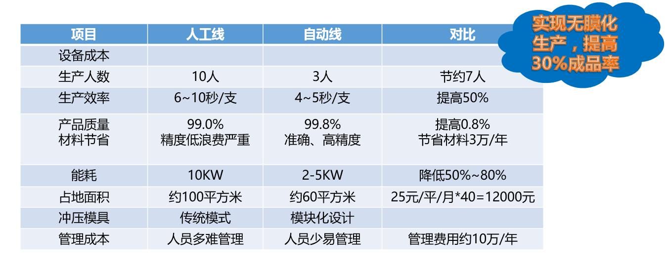 生產線只需要2~3人操作 整體效率可控制在4.5秒左右。